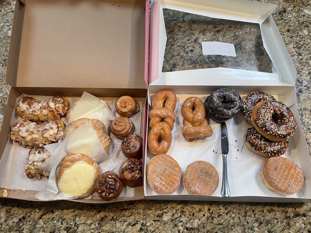 Aside from donuts, they also offer a variety of soft pretzels and freshly baked breads, expanding the menu for bread lovers.